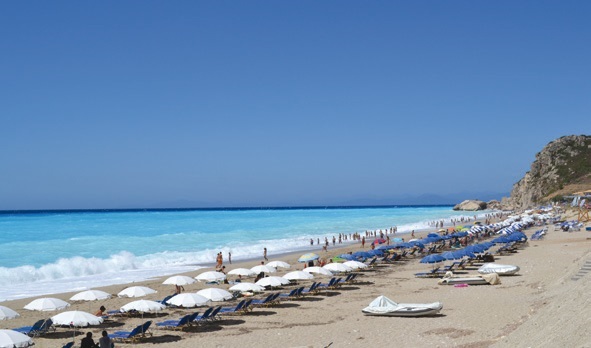 Coasta vestică a Insulei Lefkada este singurul loc din Grecia în care se află una lânga alta şapte plaje superbe, a căror frumuseţe se păstrează încă neatinsă de turismul de masă.