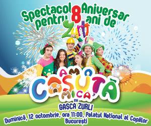 Castiga o invitatie pentru doua persoane si impreuna cu toți prietenii ZURLI, părinți și copii, sunteți așteptați pe 12 octombrie la Palatul Naţional al Copiilor, la ora 11.00, să cântati în cor “La mulți ani, Zurli!”. Personajele iubite din Gașca ZURLI promit cea mai tare distracție!