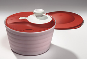 • O sită cu o formă specială a perforațiilor pentru centrifugarea salatei fără să o afecteze.