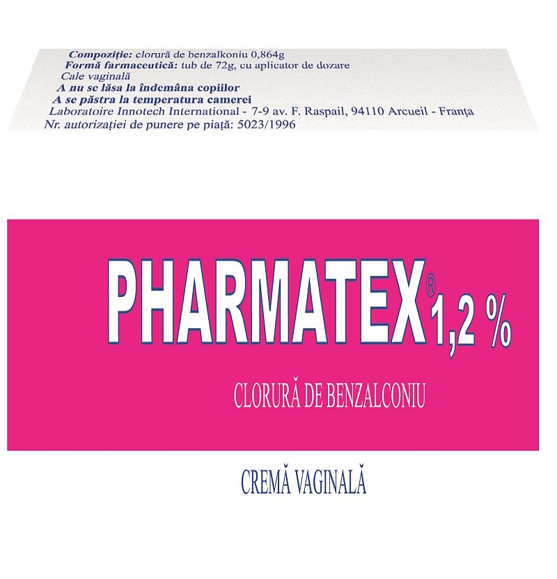 Pharmatex® capsule poate fi folosit de toate femeile, inclusiv acele femei care au boli cardiovasculare (ca hipertensiunea arterială), tulburări metabolice (hiperlipidemie, diabet etc.), boli hepatice, cancer mamar și cel de col uterin, adică femeile care au contraindicații la pilule contraceptive sau dispozitive intauterine. Clorura de benzalconiu este un spermicid și un antiseptic în același timp. Studii făcute in vitro arată că produsul este activ pe un anumit număr de agenţi infecţiosi resposabili pentru bolile transmisibile pe cale sexuală, în special: gonococi, chlamydii, herpes virus tip 2, HIV, Trichomonas vaginalis, stafilococ auriu. Nu se produc modificari ale florei saprofite iar bacilii Döderlein nu sunt influenţați. Pentru a nu se inactiva efectul contraceptiv, nu se recomandă asocierea altor medicamente administrate pe cale vaginală (antifungice, antitrichomonas, antibacteriene, antiseptice, antiherpetice, produse cu administrare locală ce conţin estrogeni). Prin substanța sa activă, clorura de benzalconiu, Pharmatex® capsule acționează strict local, fără să provoace efecte nedorite și fară să modifice flora vaginală, produsul respectand Ph-ul vaginal.
