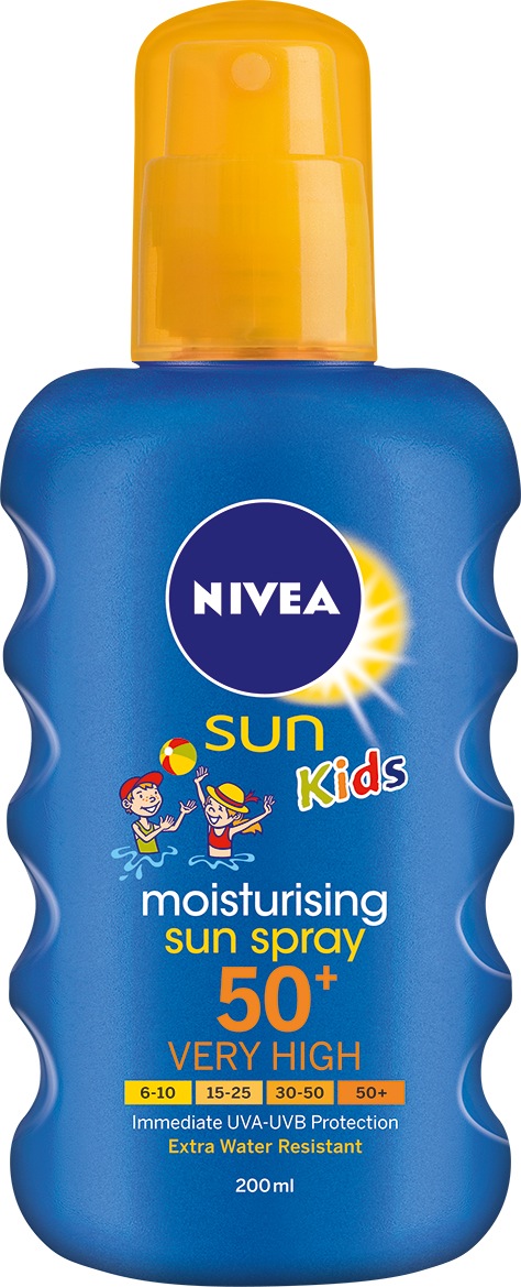 Special destinat pielii sensibile a copiilor, Spray-ul colorat de protecţie solară de la NIVEA Sun protejează eficient chiar şi împotriva arsurilor solare şi a deteriorării pielii pe termen lung. Emulsia este colorată în albastru, o adevărată distracție pentru cei mici. În momentul în care culoarea devine albă, emulsia trebuie reaplicată, pentru o maximă siguranță. Produsul oferă protecţie imediată şi are o rezistenţă la apă de lungă durată pentru ca micuţul tău să se bucure, fără griji, de soare, oriunde ar fi.
