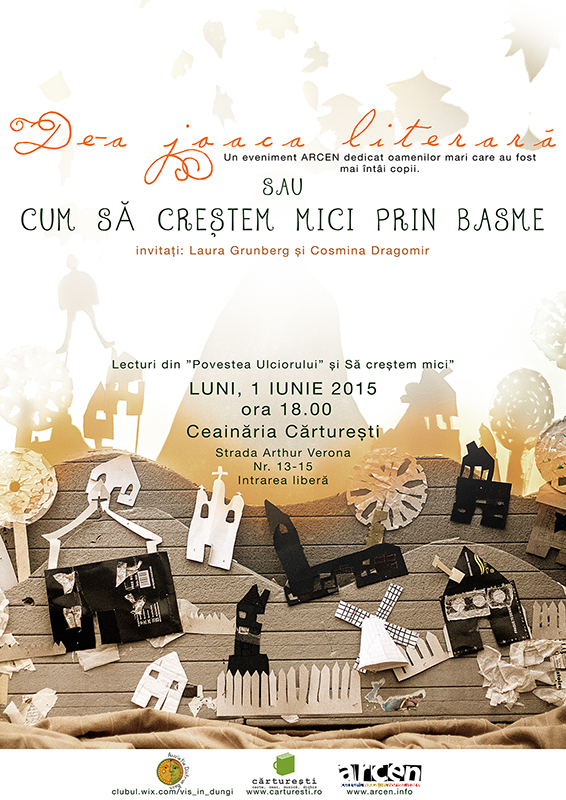 ARCEN – Asociația Română pentru Cultură, Educație și Normalitate organizează luni, 1 iunie, începând cu ora 18.00, la Ceainăria Cărturești (str. Arthur Verona, nr. 13 – 15), evenimentul „De-a joaca literară sau cum să creştem mici prin basme”.