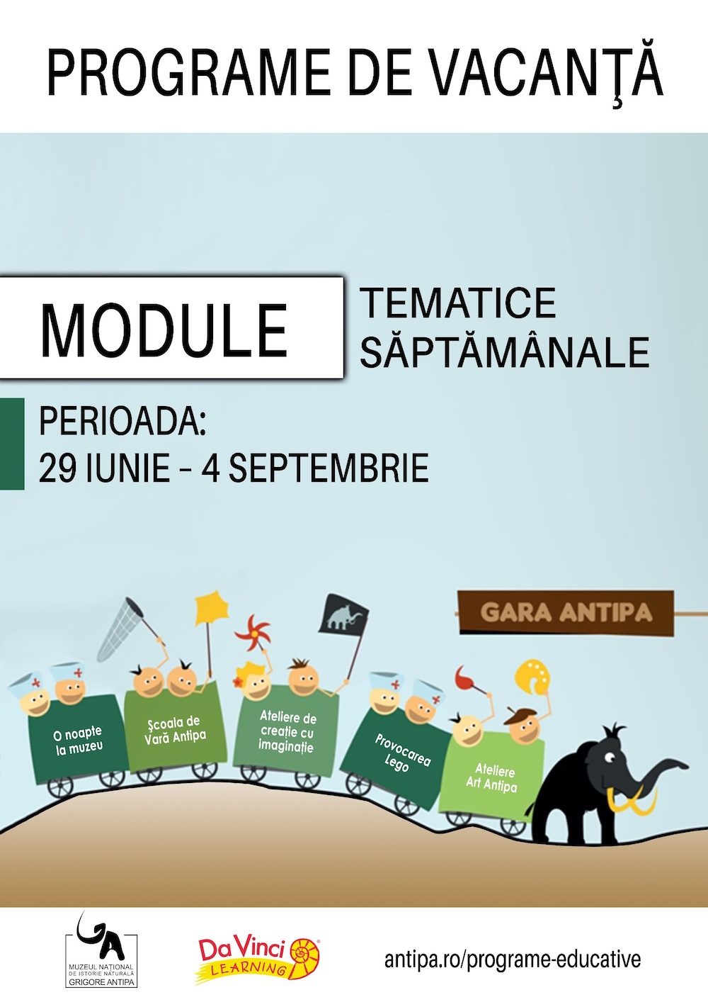 Muzeul Național de Istorie Naturală „Grigore Antipa” continuă și în acest an oferta educațională de vacanță pentru copii. În acest sens, Muzeul propune diverse programe de educație ştiinţifică, dezvoltarea creativității, imaginației, simțului artistic și a deprinderilor de comunicare și lucru în echipă.