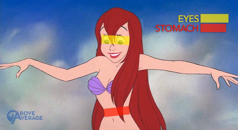 Site-ul Aboveaverage.com a facut un studiu bazat pe fotografii ale celor mai populare 11 printese din productiile studiourilor Disney. Concluzia a fost ca ochii printeselor Disney au fost desenati intr-o maniera nerealista, fiind mai mari decat stomacal personajelor animate abat de subite de copii si adolescenti.