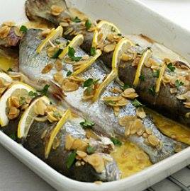 Se curata pastravii, se spala si se taie aripioarele. Se sterg bine cu hartie absorbanta. Se dau prin faina amestecata cu piper, marar uscat si praf de mustar. Cu o pensula se pune suc de lamaie peste pastravi dupa care se dau din nou prin faina. Se pune untul la topit intr-un vas destul de incapator, se prajesc migdalele pana devin aurii dupa care se scot pe un servet absorbant. Se pun pastravii la prajit pe foc potrivit se intorc doar o singura data avind grija sa nu se rupa. Dupa ce au o culoare aurie se scot pe un servet absorbant. In vas se adauga sucul de lamaie care a ramas, iar vinul se lasa sa ajunga pana la punctul de fierbere pana ce sosul se ingroasa si se adauga migdalele. Pastravii se aseaza pe un platou (sau fiecare pe farfurie separat) si se toarna sosul peste pastravi. Se servesc imediat.