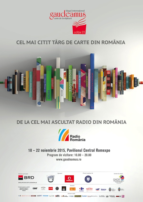 „Cel mai citit târg de carte, de la cel mai ascultat radio”, Târgul Internaţional GAUDEAMUS 2015 incepe miercuri si va avea loc în perioada 18 – 22 noiembrie în Pavilionul Central al Complexului Expoziţional Romexpo. Evenimentul, ajuns la ediţia cu numărul 22, este iniţiat şi organizat de Radio România.