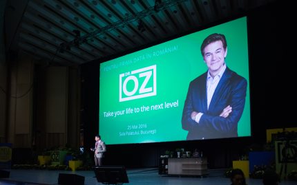 Miercuri, 25 mai 2016, Sala Palatului, ora 6:30. Pe holurile cladirii e deja forfota mare, multa lume care alearga dintr-un loc in altul, ba pentru a instala roll-upuri, ba standuri de carti, sau de cosmetice. Cativa voluntari inca mai aranjeaza mapele pe fiecare scaun din sala, iar la intrare se pregateau punctele de acces pentru cei care vor participa la evenimentul ce urma. Agitatia era mare, insa pe chipurile fiecaruia se putea observa un entuziasm, o farama de zambet, ascunsa dupa semnele de oboseala acumulata in ultimele zile de munca neincetata. Scopul final al tuturor fiind acelasi: publicul roman sa aiba parte de o experienta cat mai frumoasa la intalnirea cu cel mai celebru doctor din lume – Dr. Mehmet Cengiz Oz, care ajungea pentru prima data pe o scena din Romania, pentru a sustine conferinta „Take your life to the next level”.