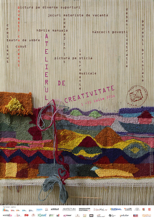 10.00-12.00  Atelier de ţesături, croitorie şi cusături cu Lidia Stareş, la Atelierul  de țesături, informații și înscrieri la telefon: 0722.798.284