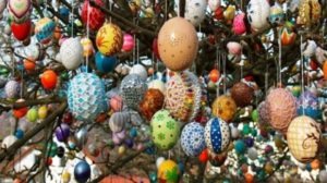 În total, pomul de Paște din acest an va avea pe crengi aproximativ 700 de ouă viu colorate, realizate din polistiren, materiale textile, hârtie sau plastic, ce vor fi date jos abia după Rusalii.