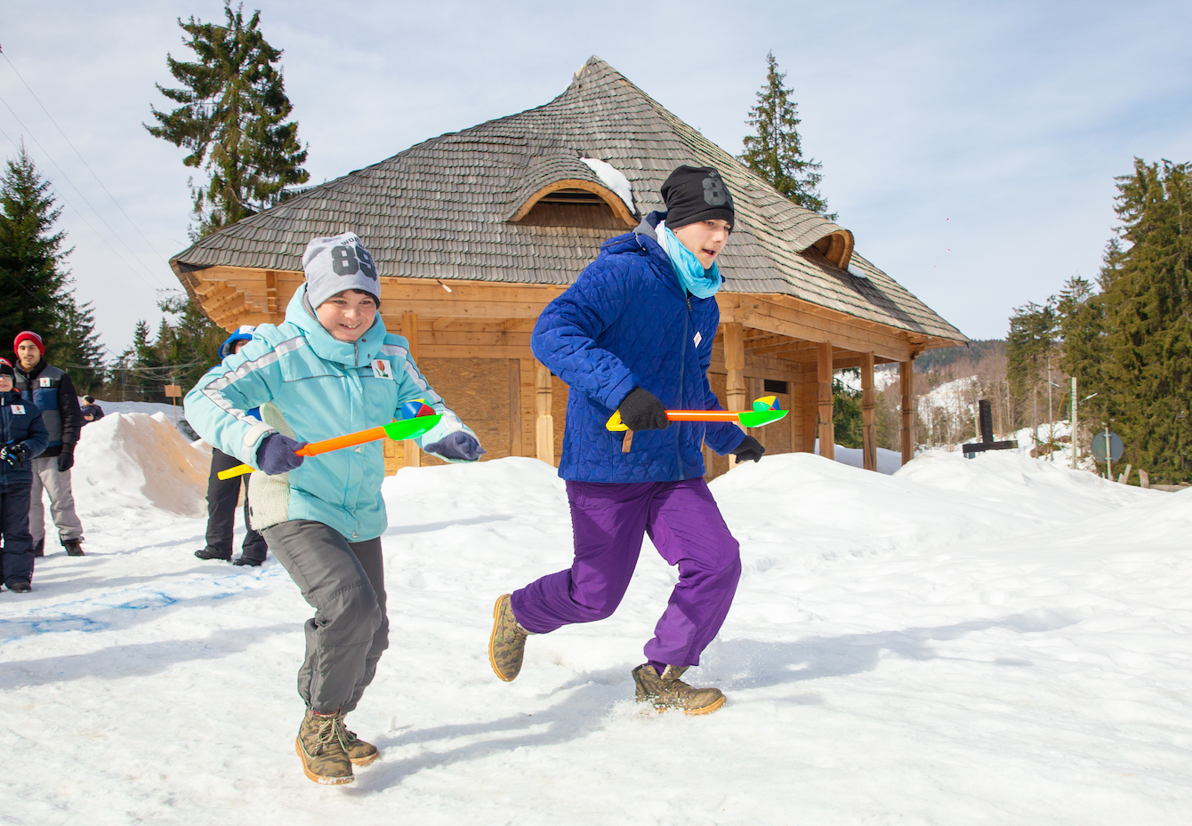 Copiii și tinerii au fost organizați în 11 echipe: Albinuțele, Buburuzele, Cățelușii, Fluturașii, Ghioceii, Inimioarele, Lalelele, Margaretele, Omuleții de zăpadă, Pisicuțele și Steluțele, participând pe rând la cele 8 probe ale competiției, fotbal, șotron, parașută, trasul frânghiei, sanie, ștafeta cu lingura cu ou, la care s-a adăugat o provocare—proba de dans, o încântare pentru toți participanții.