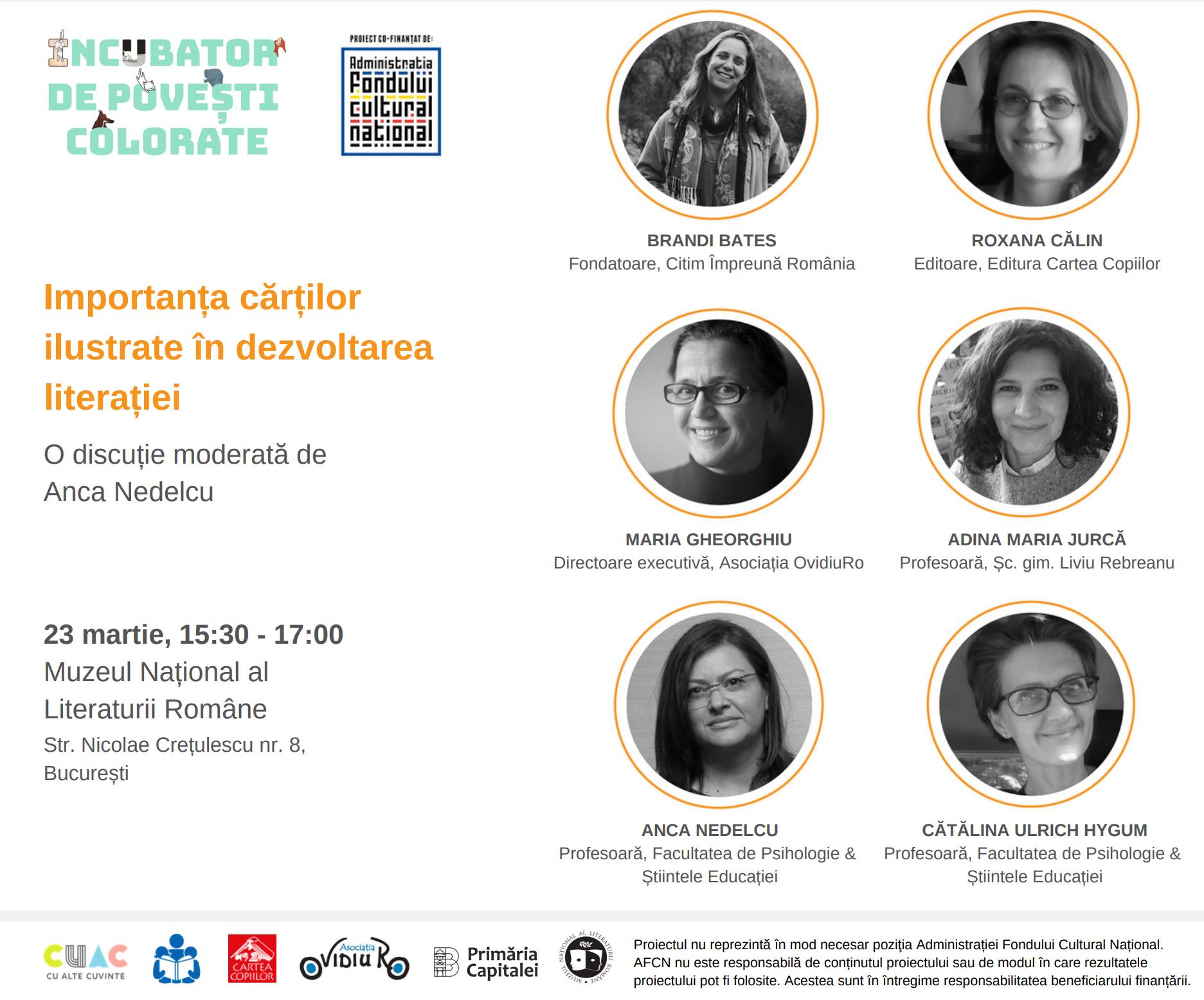 În cadrul Incubatorului de povești colorate, un atelier pentru scriitori și ilustratori susținut de Michel Van Zeveren, asociația Cu Alte Cuvinte și mișcarea Citim Împreună România organizează o discuție despre importanța cărților ilustrate în dezvoltarea literației.