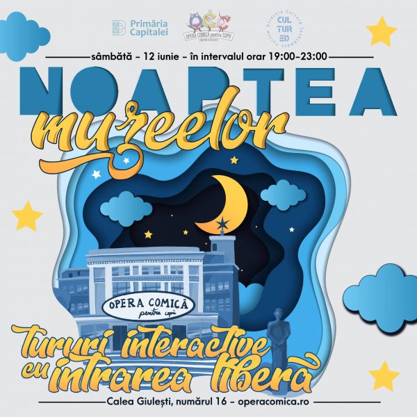 Opera Comică pentru Copii, se alătură, pentru al șaselea an, inițiativei globale „Noaptea Muzeelor” (12 iunie) și le oferă experiențe unice și memorabile spectatorilor săi, indiferent de vârstă! Între orele 19:00 și 24:00, toți cei care vor păși pragul Operei Comice pentru Copii vor porni la fiecare sfert de oră în tururi ghidate prin clădire. Pe traseu îi vor aștepta acvarii cu pești exotici, o expoziție de costume de la Corul Național de Cameră „Madrigal – Marin Constantin”, o mini expoziție de ceramică a copiilor de la Atelierele „Micul Artist”, iar periplul este presărat cu momente muzicale și coregrafice. La final, copiii sunt așteptați în Grădina cu Fluturi, unde se vor putea bucura de o atmosferă exotică, cu fluturi vii printre care spectatorii se pot plimba liberi. Participarea în tur este gratuită, iar atracțiile din Grădina OCC vor avea un program prelungit cu această ocazie, fiind disponibile publicului până la miezul nopții.