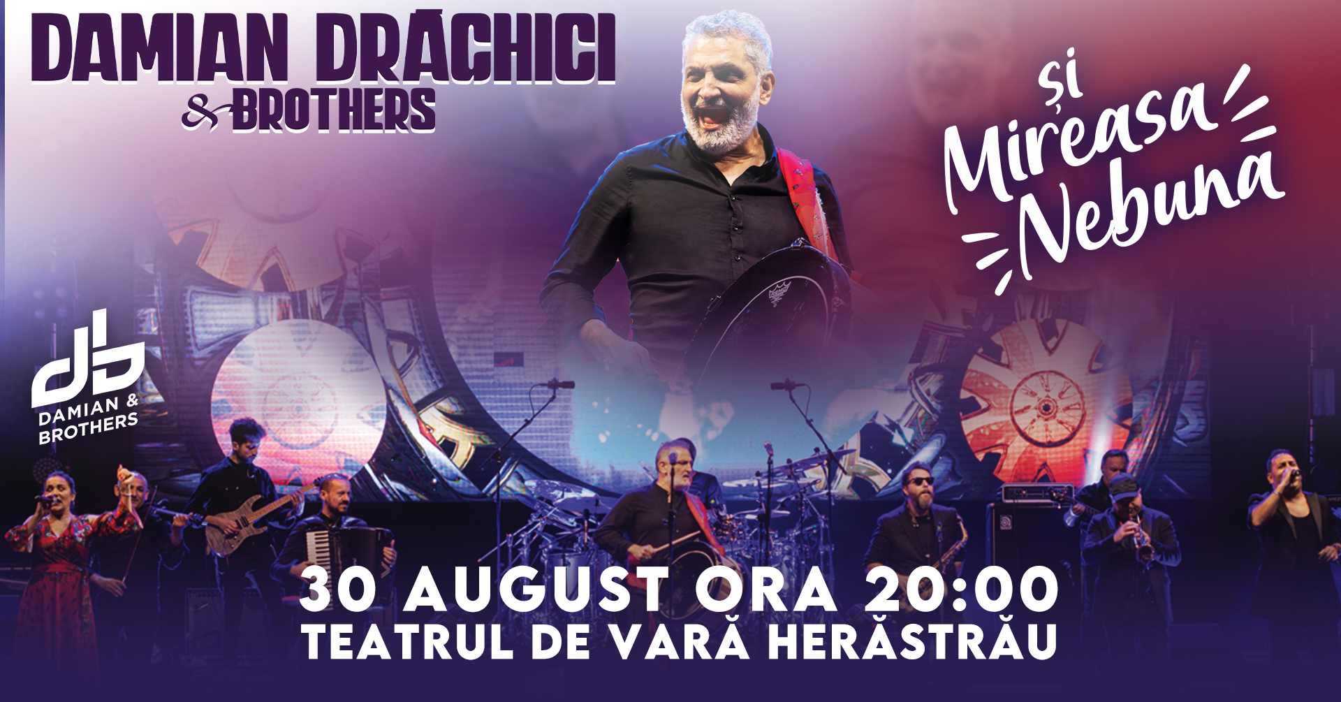 „DAMIAN DRĂGHICI & BROTHERS și Mireasa Nebună” este titlul concertului pregătit să cucerească publicul, pe 30 august, la Grădina de Vară Herăstrău, începând cu ora 20:00. Conceptul acestuia a fost construit în urmă cu câtiva ani, după vizionarea filmului românesc „Tusea și junghiul”, regizat de Mircea Daneliuc, în care marii actori Ernest Maftei și Olga Tudorache interpretau rolurile principale.
