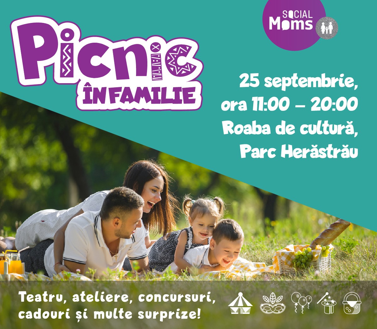 Picnicul urban Social Moms îmbină ieșirea la iarbă verde cu ateliere creative, spectacole pe scenă, concursuri și tombolă cu numeroase premii. Gazda evenimentului va fi bloggerul Dan Cruceru, taticool.