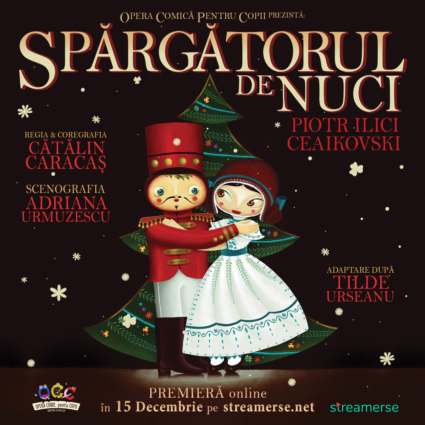 Baletul „Spărgătorul de Nuci”, în regia și coregrafia lui Cătălin Caracaș, constituie o altă bucurie oferită spectatorilor doar în ultima lună a anului. Pentru că biletele pentru cele 7 reprezentații programate sunt epuizate, OCC oferă în premieră posibilitatea de a viziona transmisiunea în direct din Sala Mare a baletului „Spărgătorul de Nuci” ONLINE, pe 15 decembrie, de la ora 19, pe platforma Streamerse (streamerse.net/event/spargatorul-de-nuci). După transmisiunea live, spectacolul va fi disponibil până la finalul anului. Biletul costă 25 de lei și permite vizionarea nelimitată după achiziție.