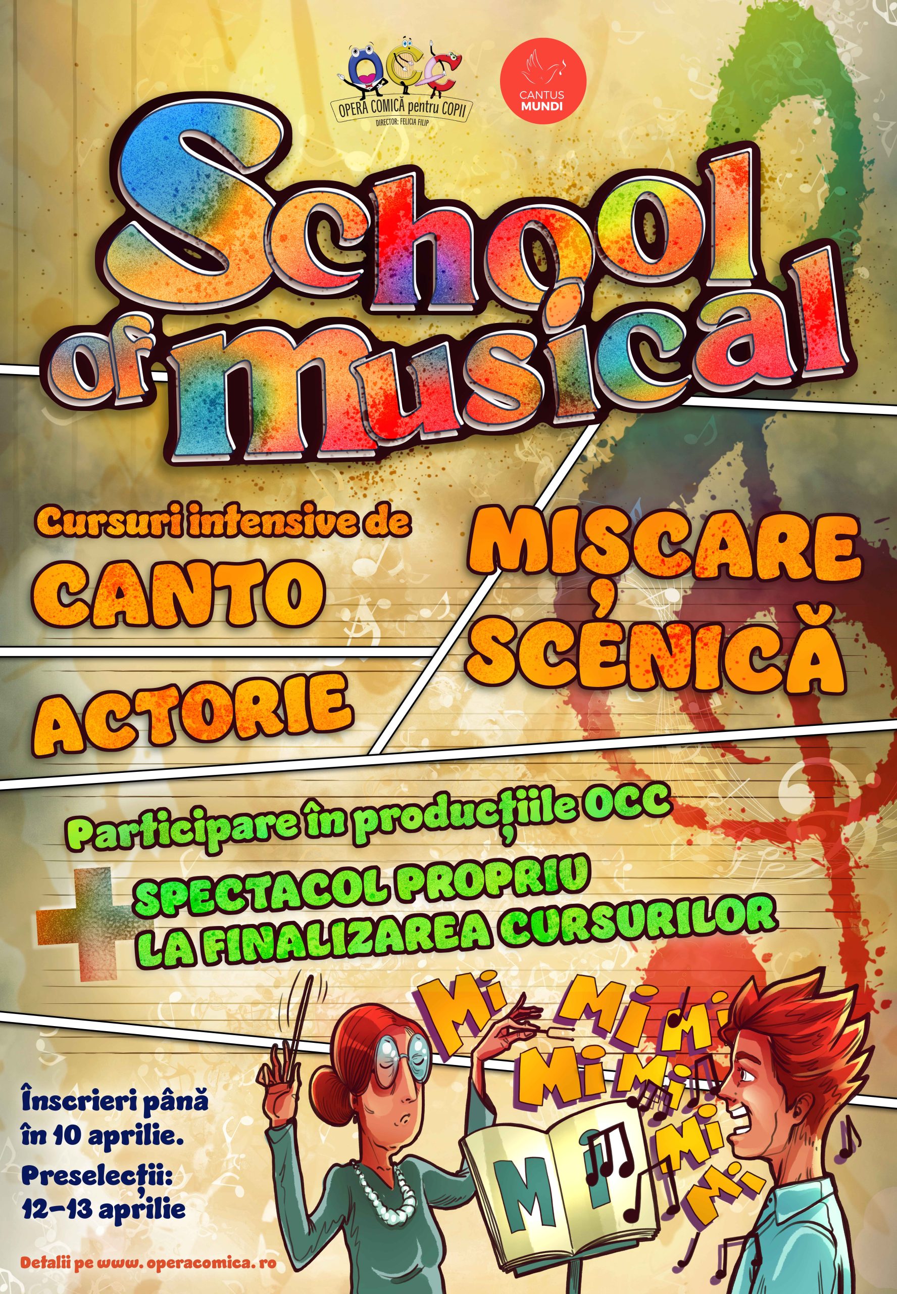 După succesele înregistrate în ultimii ani cu producții de musical în care majoritatea artiștilor din distribuție au fost copii, Opera Comică pentru Copii lansează, alături de Programul Național Cantus Mundi, un proiect unic în România: „School of Musical”. Conceptul are în vedere viitorul scenei românești de musical, prin instruirea, la cel mai înalt nivel, a unei generații de elevi între 6 – 16 ani, deja inițiați în artele spectacolului și care vor face performanță sub lumina reflectoarelor în spectacolele Operei Comice pentru Copii.