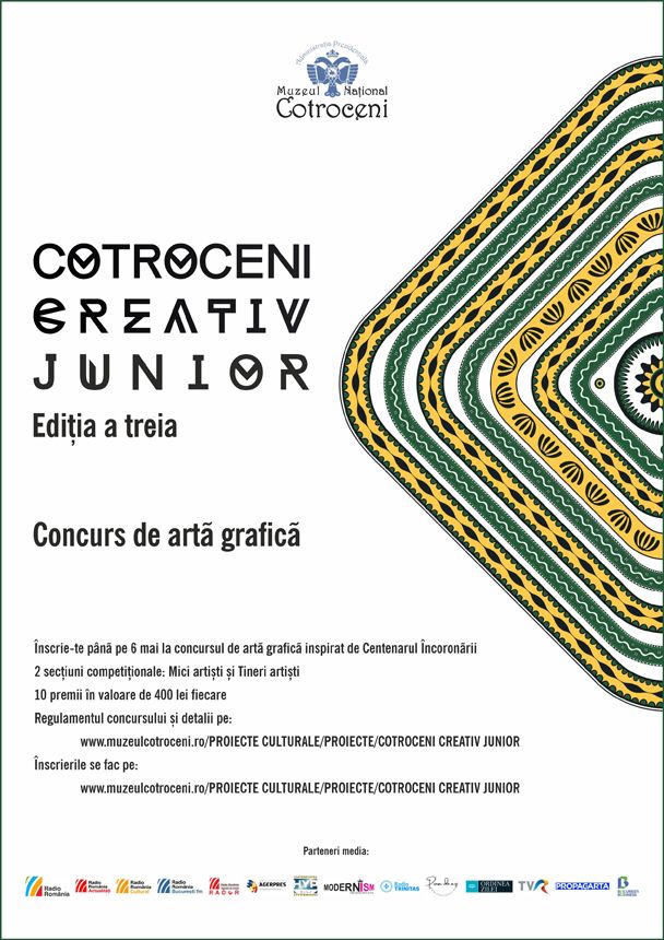 Muzeul Național Cotroceni revine în anul 2022 cu cea de-a III-a ediție a proiectului Cotroceni Creativ Junior. Concursul de arte vizuale din acest an celebrează Centenarul Încoronării și propune elevilor din ciclul gimnazial și liceal să transpună, în lucrări de artă grafică, viziunea lor despre evenimentele ce au avut loc în anul 1922, când cei doi suverani ai țării, Ferdinand și Maria, au fost încoronați ca regi ai României Mari. Participanții au misiunea de a identifica momente, evenimente, spații, personalități cheie ale încoronării și de a le reduce la nivel de simbol în lucrările lor.
