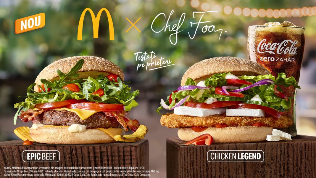 Cea de-a treia colaborare Chef Foa x McDonald’s continuă provocarea lansată în vara anului 2021, când consumatorii au fost invitați să descopere primii burgeri creați de acesta special pentru McDonald’s. Succesul de care s-a bucurat campania a fost reeditat în toamnă, când alți doi burgeri cu carne de vită și pui au fost introduși în meniu, în ediție limitată. Primăvara aduce noul duo premium marca Chef Foa în restaurantele McDonald’s din toată țara, odată cu lansarea Epic Beef și Chicken Legend.