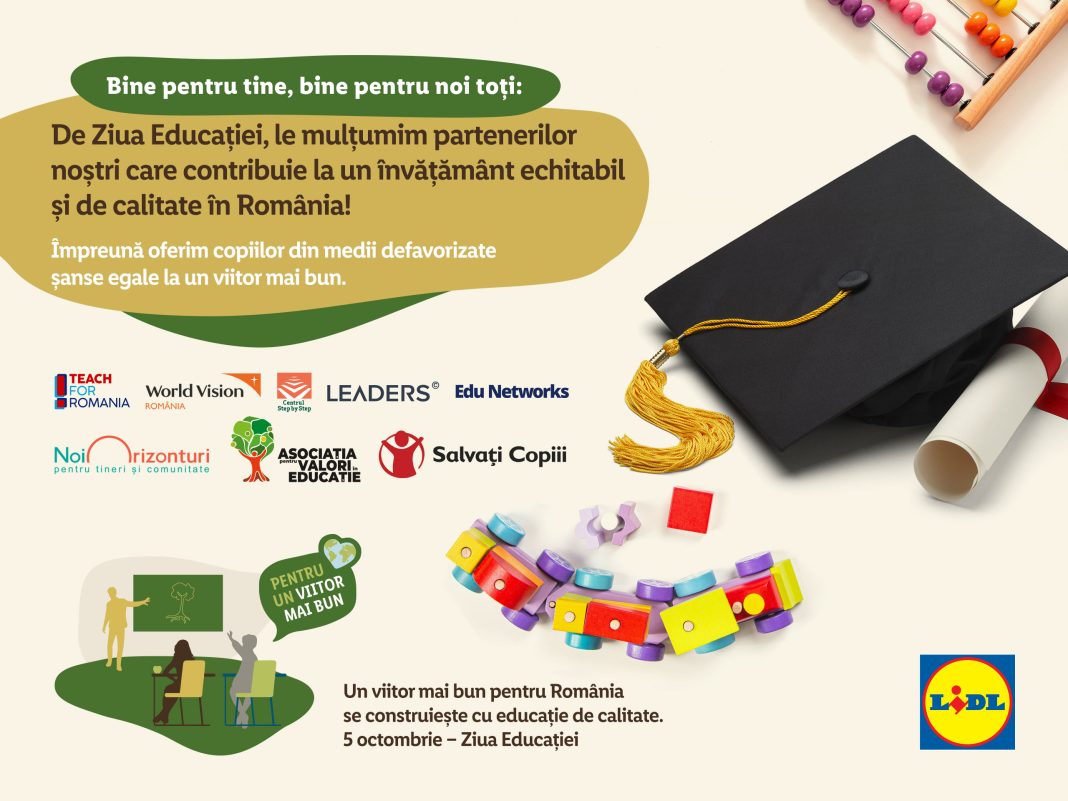 De Ziua Educației, Lidl România alături de partenerii săi strategici din societatea civilă celebrează programele realizate împreună în domeniul educației, prin care contribuie la dezvoltarea unui sistem de învățământ de calitate în România. Doar anul trecut, prin fondurile alocate de retailer, peste 60.000 de elevi din toată țara au beneficiat de acces la educație și sprijin în finalizarea studiilor, iar peste 8.600 de cadre didactice au participat la programe de formare.