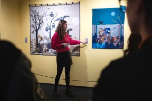 Ei bine, artele acestea minore, textile, își revendică astăzi locul conceptual alături de marea Sculptură și regina Pictură care au fost luate în stăpânire de-a lungul secolelor aproape exclusiv de bărbați. Lilian Theil, înconjurată de pânzeturi, ițe și fire, așezată la masa de cusut, brodează istorii ale vieții și neființei, privește în îndepărtarea sinelui și a imaginației și zâmbește cu înțelepciune și îngăduință față de situațiile vieții și majestății artelor importante”, povestește curatoarea expoziției, Raluca Ilaria Demetrescu.