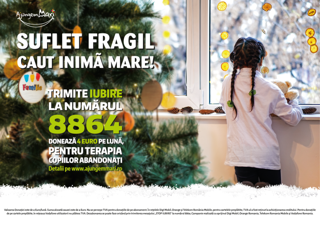 Ajungem MARI, cel mai mare program educațional în sprijinul copiilor din sistemul de protecție din România, dă startul campaniei „Suflet fragil, caut o inimă mare!”, pentru a atrage atenția asupra nevoilor emoționale ale acestora și necesității psihoterapiei pe termen lung.