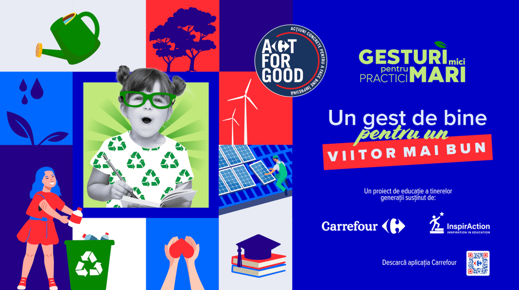 Carrefour România și Asociația InspirAction au anunțat continuarea programului educațional „Gesturi mici pentru practici mari”. Obiectivul principal al inițiativei îl reprezintă promovarea educației pentru economie circulară, încurajând în același timp reciclarea și integrarea principiilor sustenabile în activitățile zilnice.