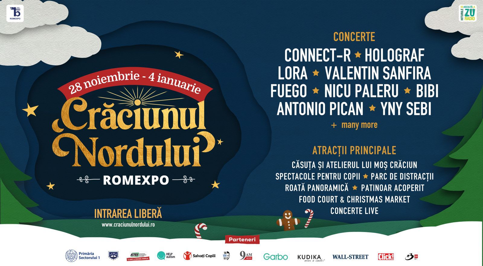 Căsuța și atelierul lui Moș Crăciun • Spectacole pentru copii • Parc de distracții • Roată panoramică • Patinoar acoperit • Food Court & Christmas Market • Concerte live cu Connect-R, Holograf, Lora, Fuego, Bibi, Antonio Pican, YNY Sebi și mulți alții!