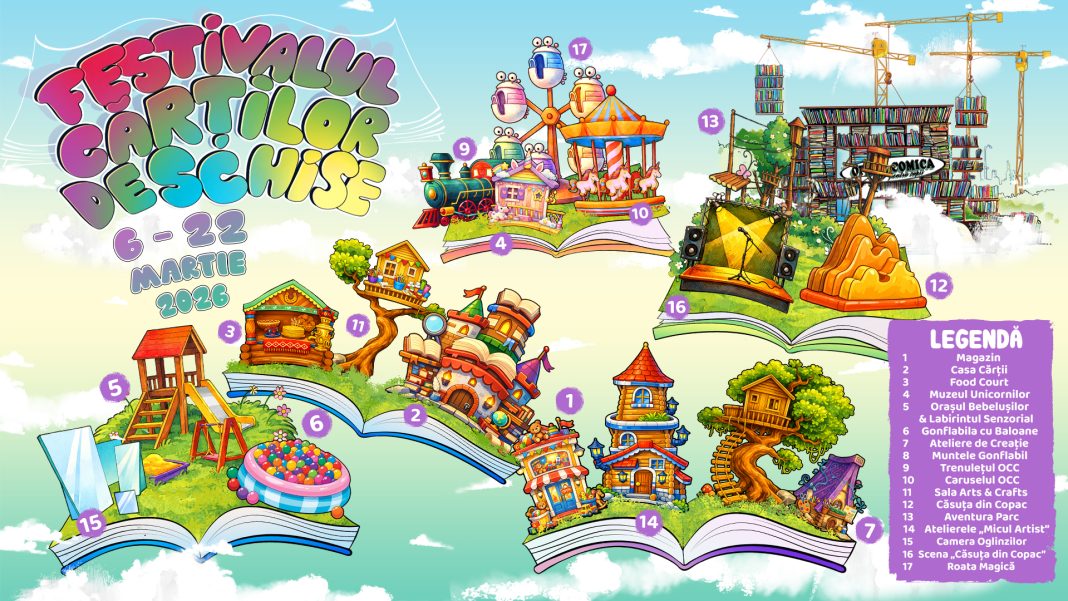 Opera Comică pentru Copii (OCC) anunță cea de-a patra ediție a Festivalului Cărților Deschise, cel mai colorat eveniment dedicat lecturii și creativității din calendarul cultural al primăverii bucureștene. Timp de trei weekenduri consecutive, între 6 și 22 martie 2026, sediul OCC se transformă într-o imensă bibliotecă vie, unde cartea nu rămâne între coperți, ci cântă, dansează și prinde viață pe scenă.